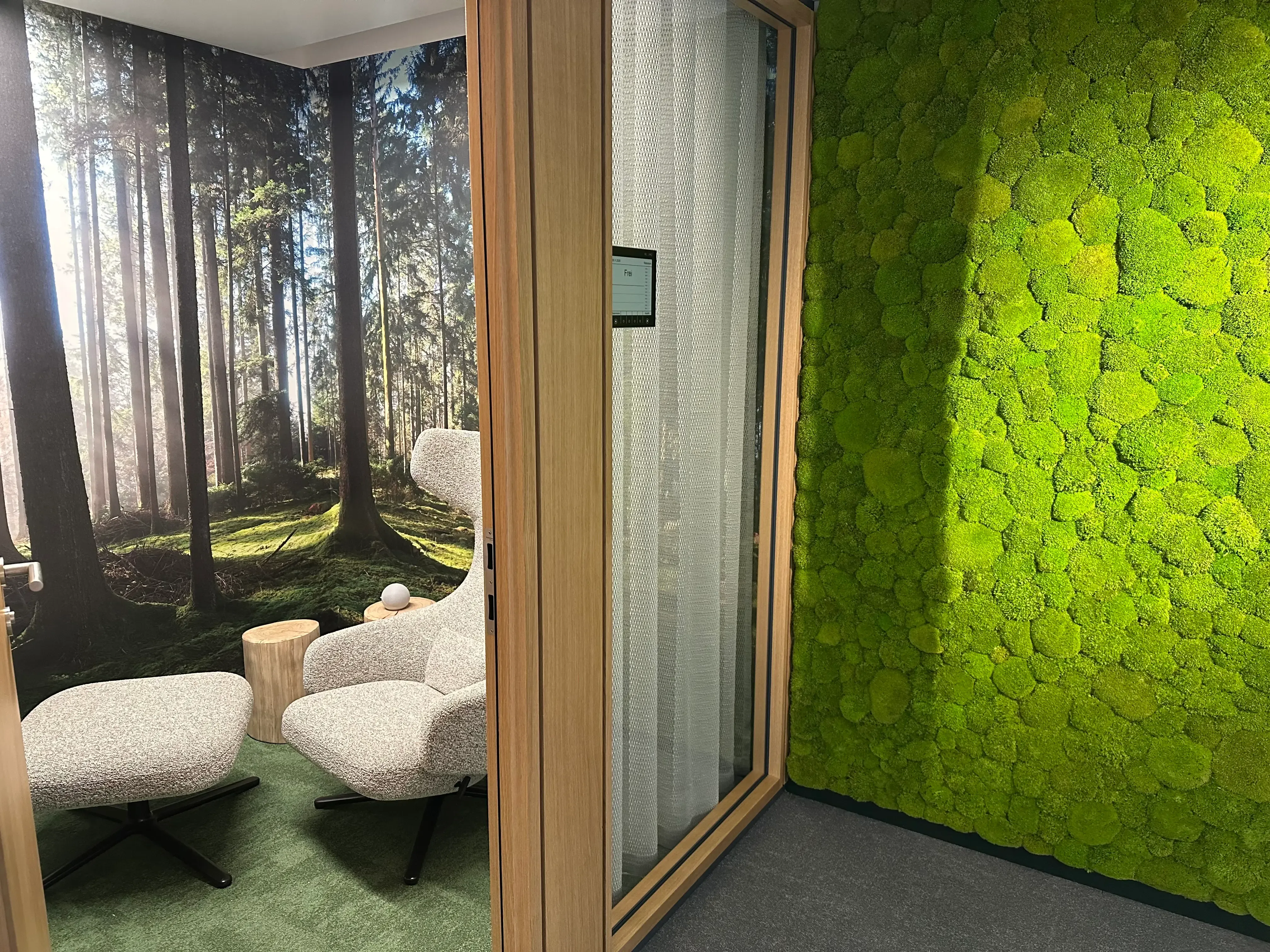 Rückzugsmöglichkeiten: Akustikboxen und andere Rückzugsmöglichkeiten stehen dir zur Verfügung, wenn du konzentriert arbeiten möchtest. In einem Ruheraum kannst du dich auch entspannen