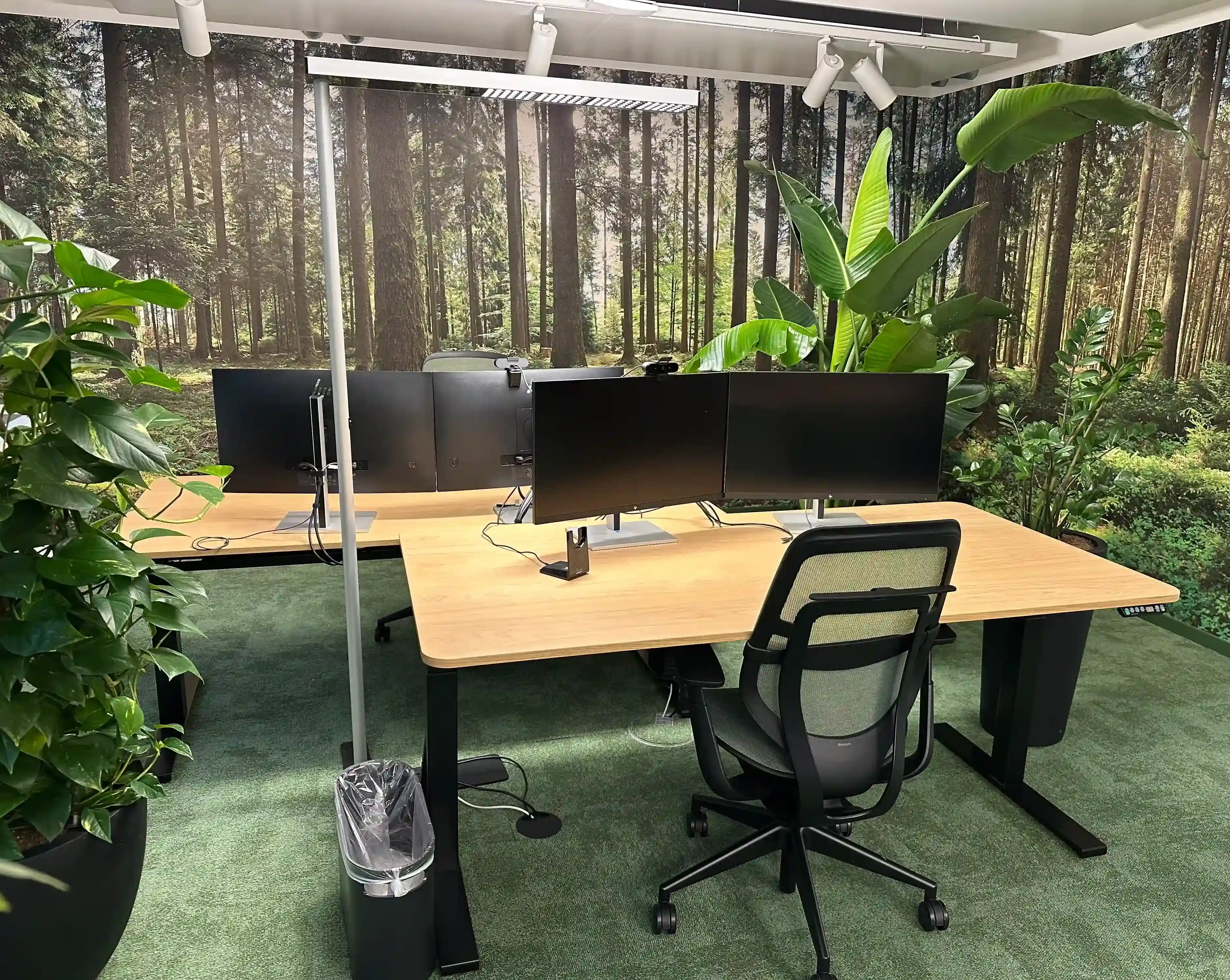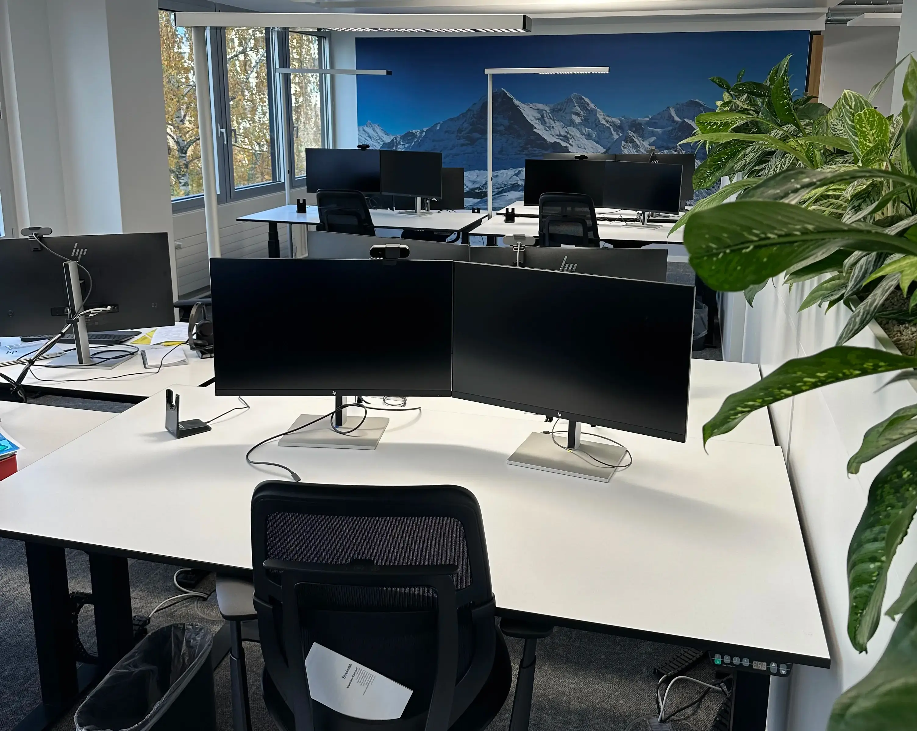 - Ergonomie: Hochwertig ausgestattete Arbeitsplätze mit extra grossen Tischen und zwei grossen Monitoren