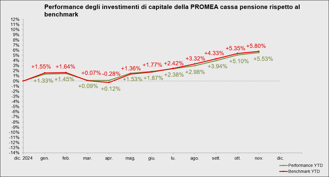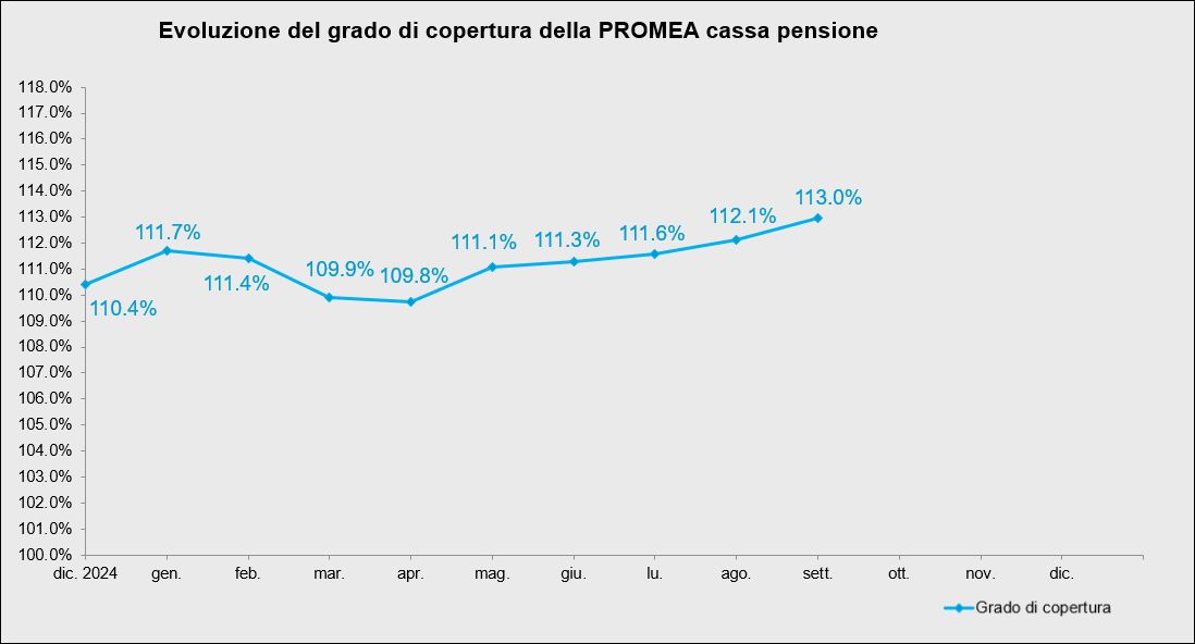 In seguito sono illustrati i valori attuali della performance degli investimenti e dell'evoluzione del grado di copertura dell’anno in corso, nonché degli anni precedenti. Bisogna considerare che durante l’anno sono valutati unicamente gli investimenti in capitale (senza immobili). Gli impegni dell’istituto di previdenza sono valutati di nuovo unicamente a fine anno.